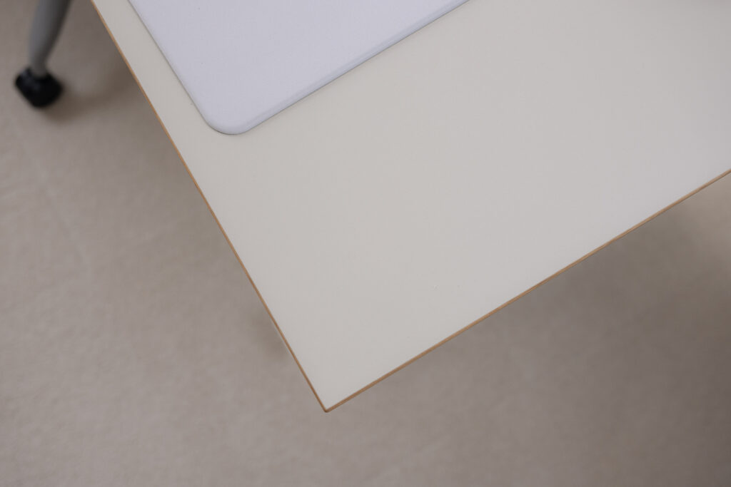 今回のデスク環境の印象を決定づけているのが、KANADEMONO(かなでもの)のリノリウム天板