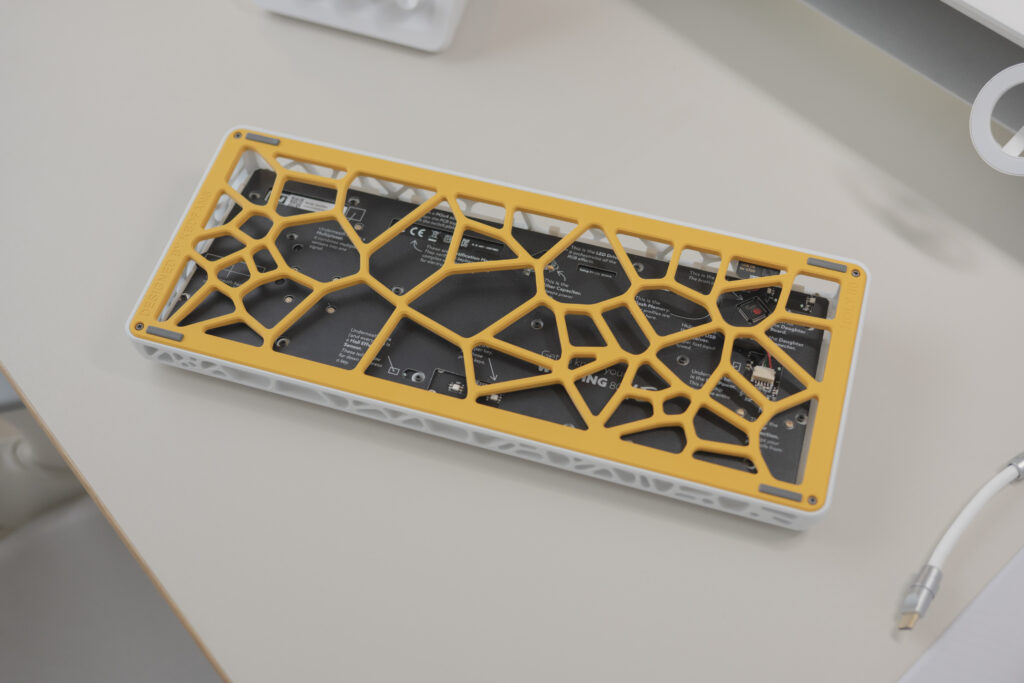 普段は決して目に入らない背面に、鮮やかなイエローのアクセントが隠れている。この『自分だけが知っているこだわり』が、所有欲を最高に満たしてくれます。 中身は最強のゲーミング性能、外見は一切の妥協なし。まさに僕にとっての理想を形にした、究極のキーボードです。