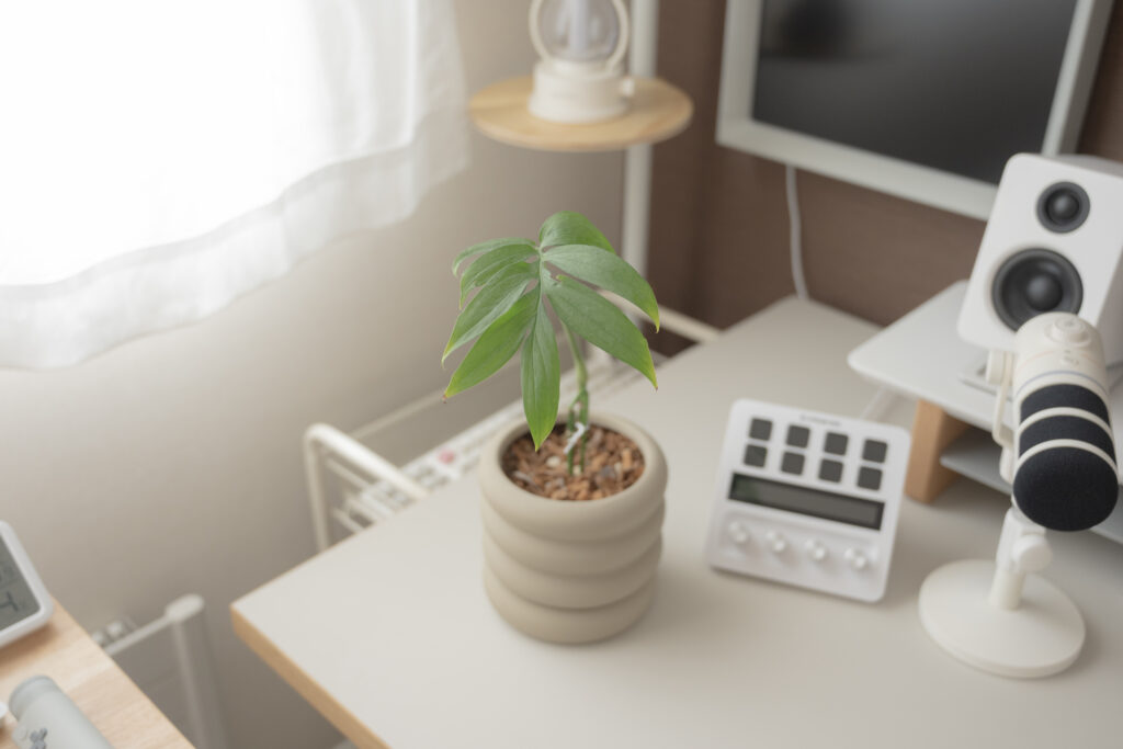 最初はインテリアの一部として迎えたはずが、大好きなデスク構築とはまた違った楽しさに魅了され、 「植物の成長」というガジェットにはない「動的な変化」に心地よい刺激をもらっています。