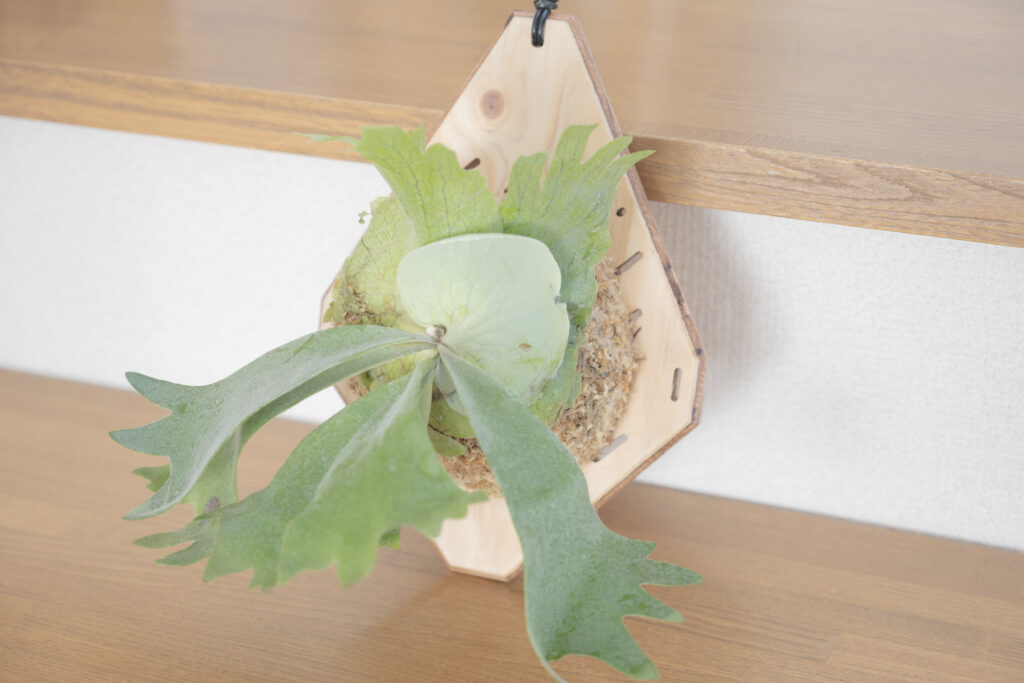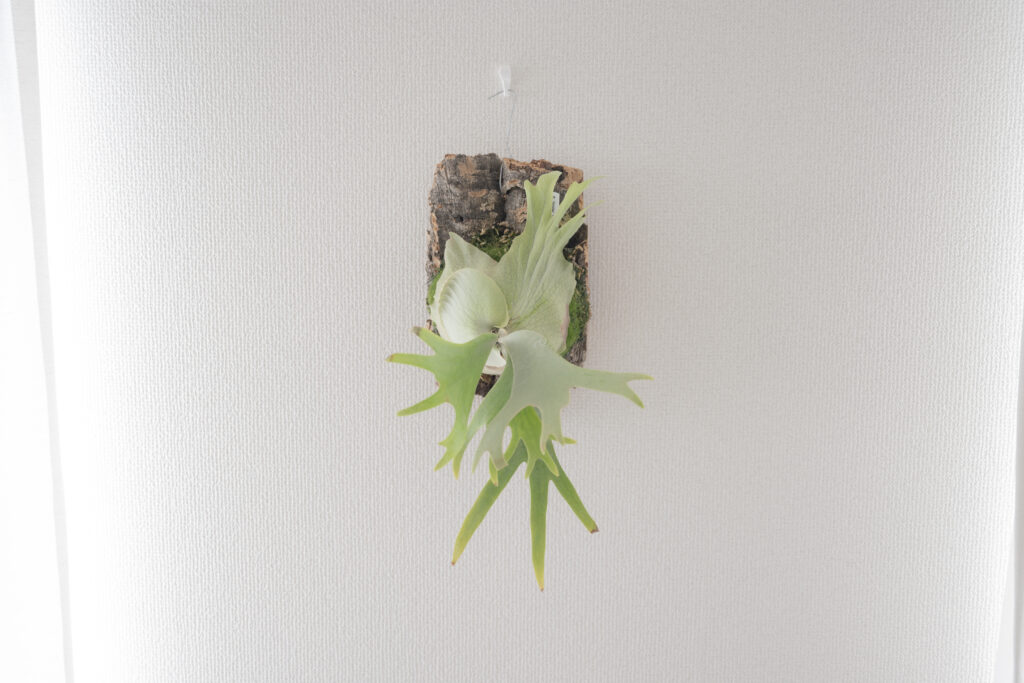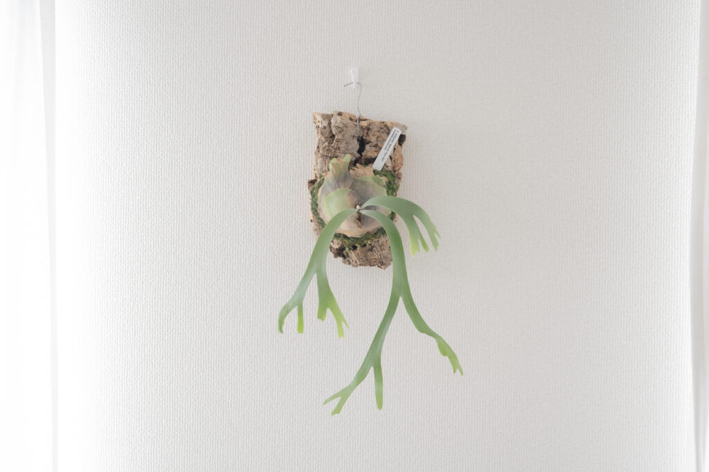 さらに、ビカクシダには「板付け」という工芸的な楽しみもあります。 壁に掛けてインテリアとして完成させる喜びがある反面、光が足りないと「徒長(間伸び)」して形が崩れるというシビアな一面も。