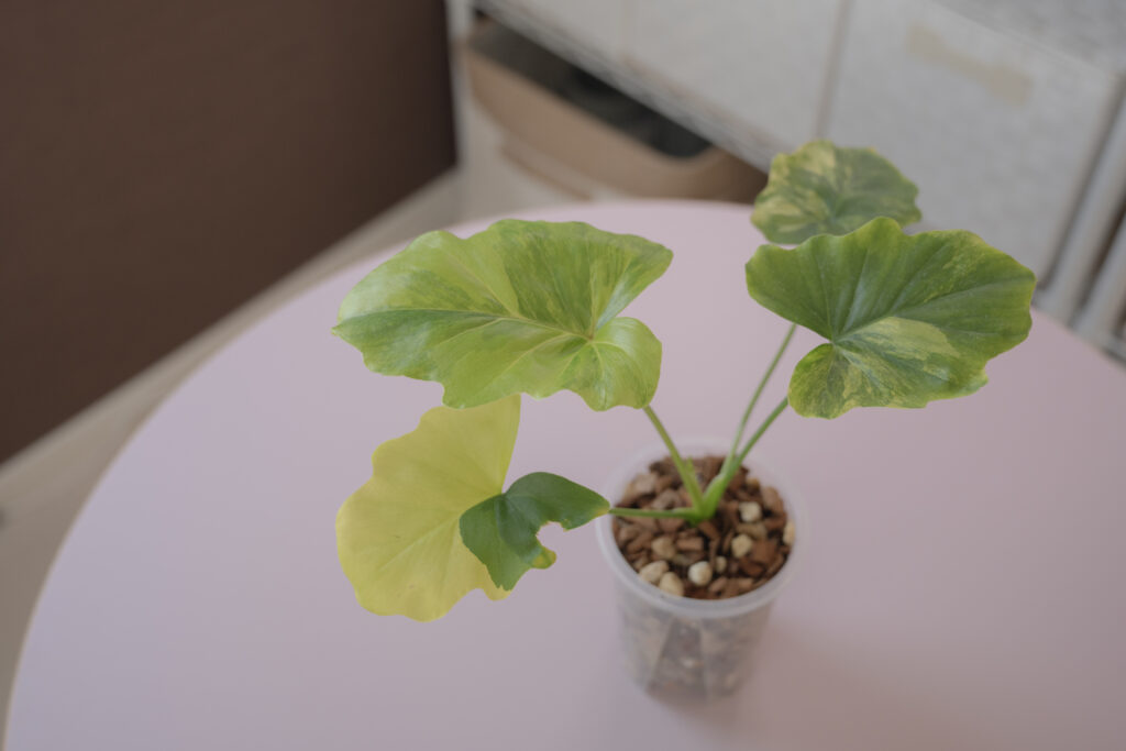セロームは、フィロデンドロンの中でも王道と言える品種です。僕が持つ斑入り品種の中でも最も色々な表現を出してくれう上に、フィロデンドロンらしい成長の速さがあります。